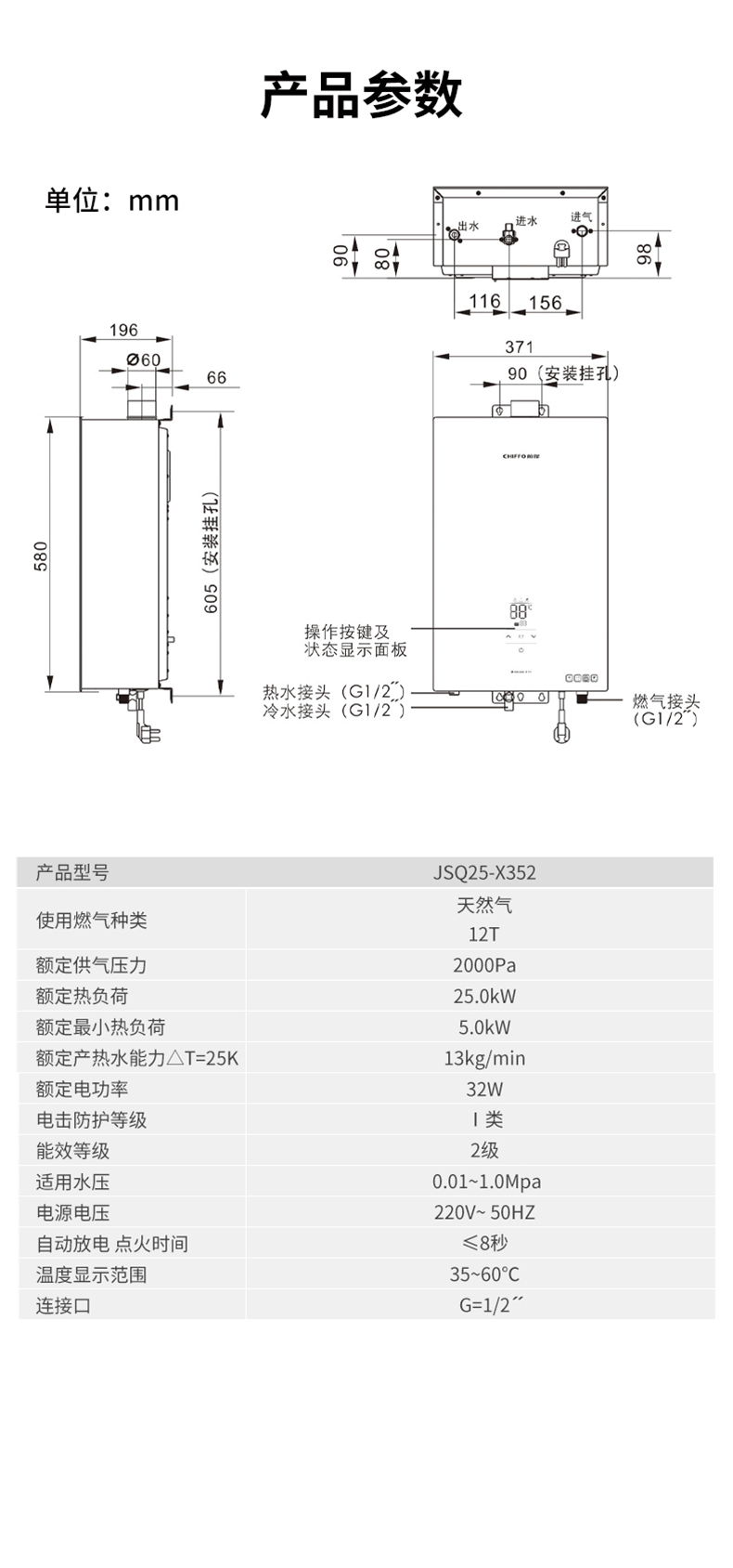 前鋒恒溫燃?xì)鉄崴鱔352